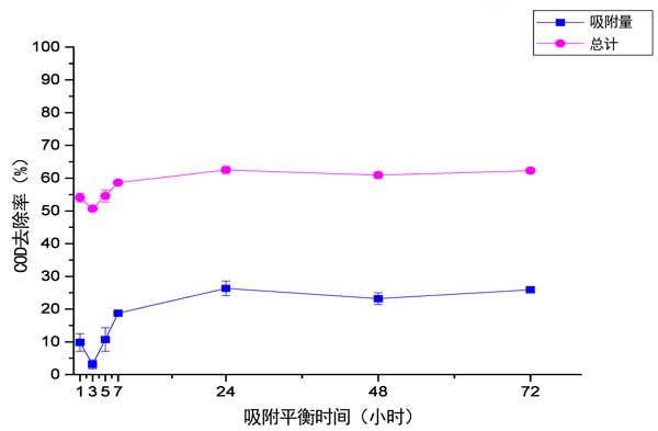 圖1:平衡時(shí)間對(duì)COD去除的影響。