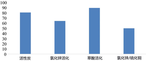 原材料用蒸餾水洗滌數次,然后干燥24小時,然后將原料通過電動研磨機獲得的粉末。將100g樣品與1L草酸(20%w/w)一起回流180分鐘,然后讓混合物在室溫下冷卻。將出售的部分通過過濾分離,以除去任何過量的草酸,將該固體與250mL/2M鹽酸一起加熱90分鐘。然后,對新混合物進行多次過濾并用蒸餾水沖洗以得到干凈的固體,以除去樣品中存在的任何水分,將固體在130℃的烘箱中放置30小時。最后,為保證樣品的均勻性,將干燥的固體研磨過篩,得到草酸活化的活性炭粉末。對含有100g原料和1L20%w/w氯化鋅酸性溶液的混合物以及100g原料和20%w/w氯化鋅酸性溶液和50g銅的混合物重復相同的程序。得到的氯化鋅活化的活性炭和氯化鋅/硫化銅活化的活性炭?傆嬋N活化方式制成的活性炭吸附劑。