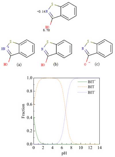圖2顯示了根據(jù)它的pKa在不同pH條件下BIT的狀態(tài)。BIT的狀態(tài)是(b)在pH2-6,這是非離子和疏水的,導(dǎo)致高吸附。當(dāng)pH為7-12時,BIT保持負(fù)電荷,這意味著它與水具有緊密的親和性并且被活性炭吸附不良。當(dāng)pH<4時,OIT已經(jīng)收取官能團(tuán),這影響了吸附。在pH>pH pzc時,帶負(fù)電的氧官能團(tuán)也阻礙OIT在活性炭上的吸附。官能團(tuán)也影響活性炭的吸附。