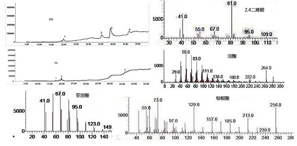 圖2.未處理 (a) 和活性炭處理過的采用 (b) 的色譜圖。
