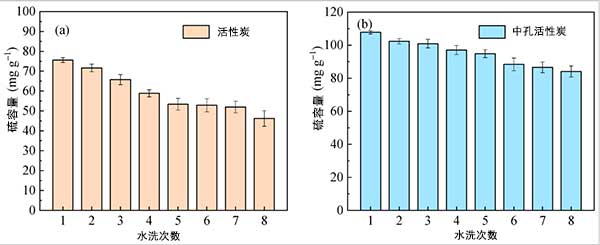 為了比較水洗再生對脫硫后活性炭樣品的影響,研究了硫容量與活性炭和中孔活性炭的循環次數,如圖3所示。活性炭的工作硫容量總體呈下降趨勢,第一次脫硫時為75.6 mg·g-1,第8次循環為46.2 mg·g-1,減少率為40.5%,如下圖所示。圖3a。結果表明,飽和吸附劑對H 2 SO 4的不完全解吸對循環SO 2有明顯的負面影響活性炭的吸附性能。用中孔活性炭觀察到類似的結果。然而,中孔活性炭的硫容量在8個循環后降低了22.0%,遠低于微孔活性炭的降低速率,這表明互連微孔和有序介孔的特性促進了H的解吸。2 SO 4并減少硫容量的減少。