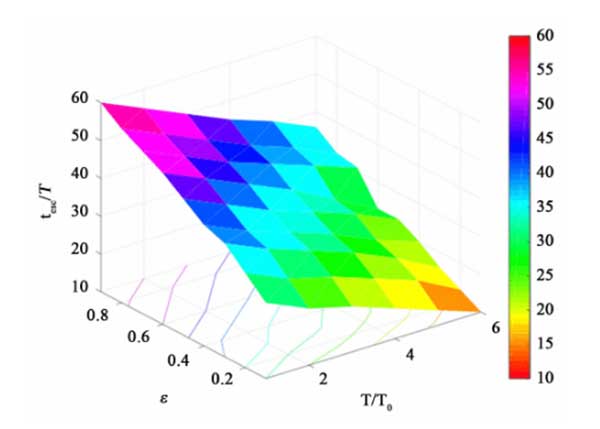 所有參數空間在孔隙度和溫度方面的綜合研究如圖4所示。我們可以看到,較高的孔隙率和較低的溫度將導致反應器中吸附物的停留時間更長。較高的溫度會導致更快的吸附速率,但會降低活性炭吸附劑的吸附能力。