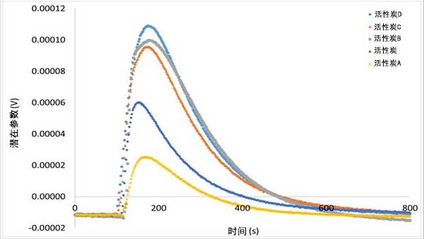 存在兩個(gè)參數(shù)之間的比例,因?yàn)榇嬖诳捎糜诜肿舆M(jìn)入的更大空間,這在吸附物和多孔結(jié)構(gòu)之間產(chǎn)生更大的相互作用。具有更高比表面積和更大相互作用的活性炭是炭D,由于吸附物和碳質(zhì)結(jié)構(gòu)之間的親和力,由于選擇性除去含氧基團(tuán)而產(chǎn)生更高的表面積并產(chǎn)生更高的浸入焓值。活性炭A具有最低的表面積值和較低的焓相互作用,因?yàn)楸砻嫜趸鶊F(tuán)降低了活性炭的可用空間以進(jìn)入己烷,并且由于其極性特征而產(chǎn)生與分子的較少相互作用。