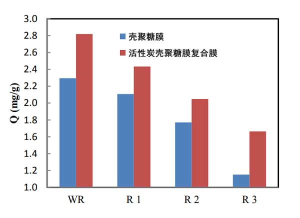 圖3:殼聚糖膜和活性炭殼聚糖復合膜的再生效率。