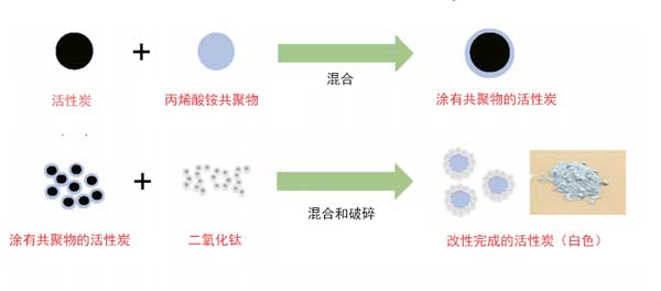 活性炭通常用作出色的多功能吸附劑。活性炭的多孔表面可通過將極薄的化合物層粘附到較大的碳表面積上來使各種化學物質失活。它們通常用于吸附去除飲用水和工業用水中的顏色,氣味,味道和不良有機和無機污染物。此外,活性炭常用于許多化學,食品和其他物質的純化。因此,基于我們的發現,活性炭對各種產生體味的化合物表現出高吸附能力,改性后更強。將平均直徑為9.4或40.5μm的活性炭粉與丙烯酸銨共聚物溶液在超純水中完全混合。將平均直徑為0.25μm的二氧化鈦粉末以5-20g的不同濃度添加到混合物中,以制造相應的改性活性炭。在115℃下將樣品干燥2小時后,使用破碎機通過均勻研磨獲得除異味活性炭(圖1)。并且比較了活性炭與除異味活性炭中所含活性炭的吸附能力。