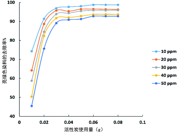圖3:活性炭使用量對亮綠色染料吸附在活性炭上的影響。